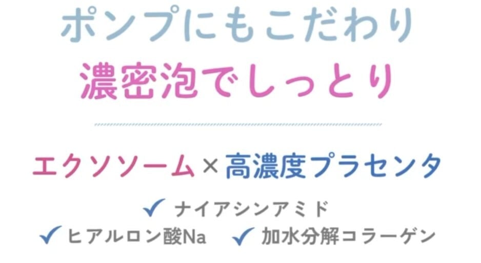 全成分:水、グリセリン、ラウリン酸PEG-80ソルビタン、DPG、イソペンチルジオール、ヤシ油脂肪酸PEG-7グリセリル、マルチトール、ラウリルヒドロキシスルタイン、ラウリン酸、ミリスチン酸、グリコシルトレハロース、水酸化K、プラセンタエキス、ナイアシンアミド、加水分解コラーゲン、ヒアルロン酸Na、ベルガモット果実油、加水分解水添デンプン、ベタイン、ステアリン酸、PEG-20ソルビタンココエート、ココイルメチルタウリンNa、ジヒドロキシプロピルアルギニンHCl、BG、クエン酸、ペンテト酸5Na、ペンチレングリコール、1,2-ヘキサンジオール、エチルヘキシルグリセリン、フェノキシエタノール