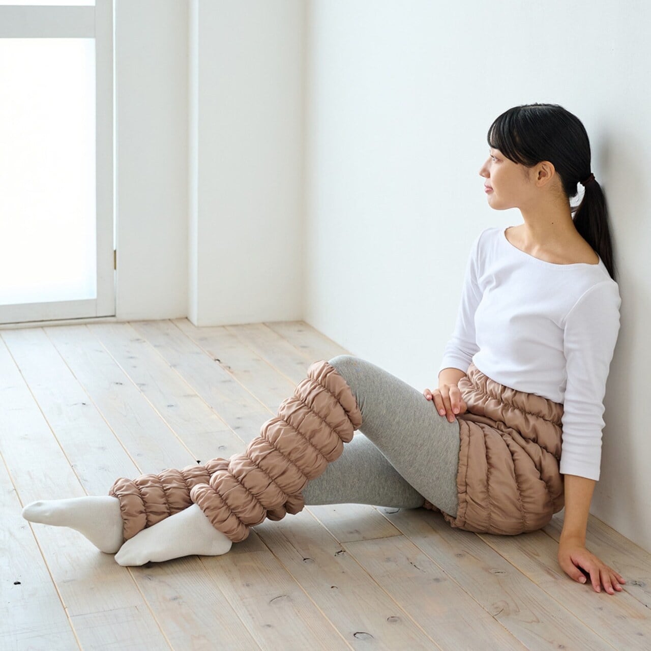腰からお尻までをすっぽり包み込み、身体の中心をじんわり温めるパンツタイプ。