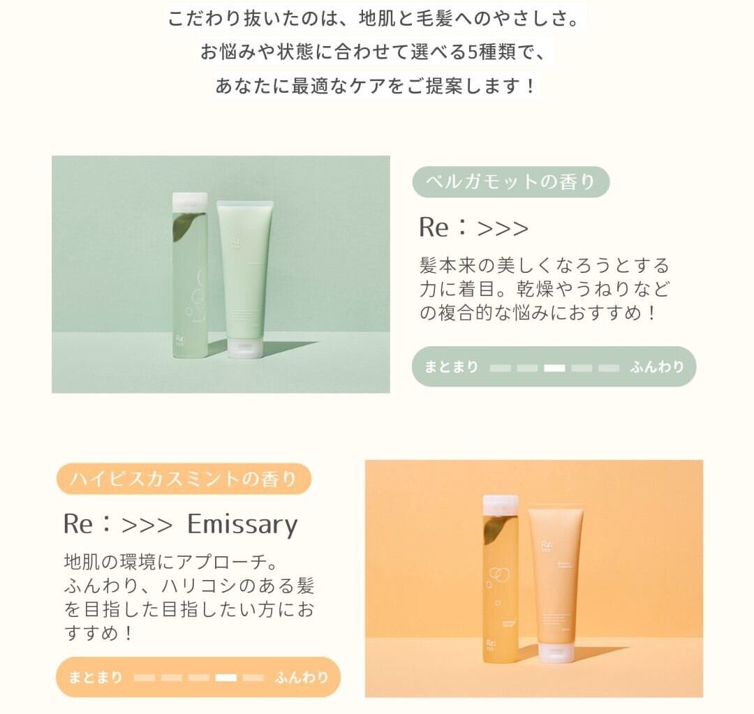 髪や地肌の状態に合わせて選べる5種で仕上がり感思いのままに。