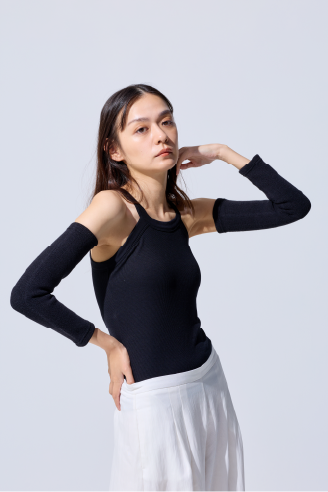 裾部分にはリブ編みを採用し、ほどよいで伸縮性で着脱もスムーズに。快適さにこだわった仕様です。