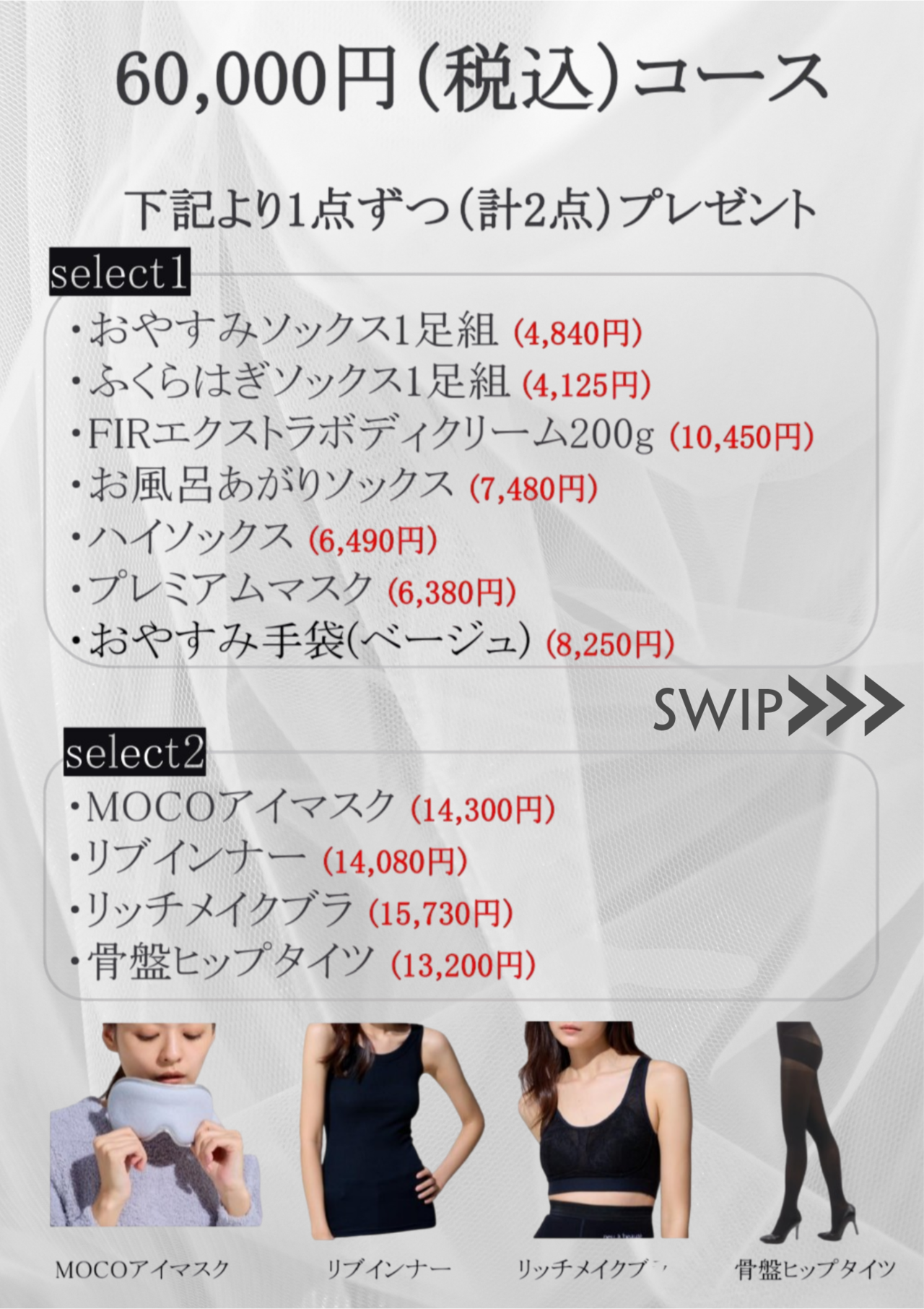 ご購入金額に応じて、下記よりお好きな商品をお選びいただけます。