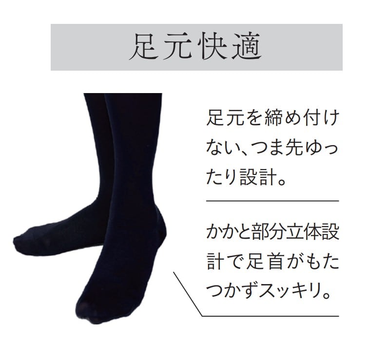 光電子Ⓡ繊維が脚全体を保温するから一年中快適、寒さでおしゃれを諦めない。