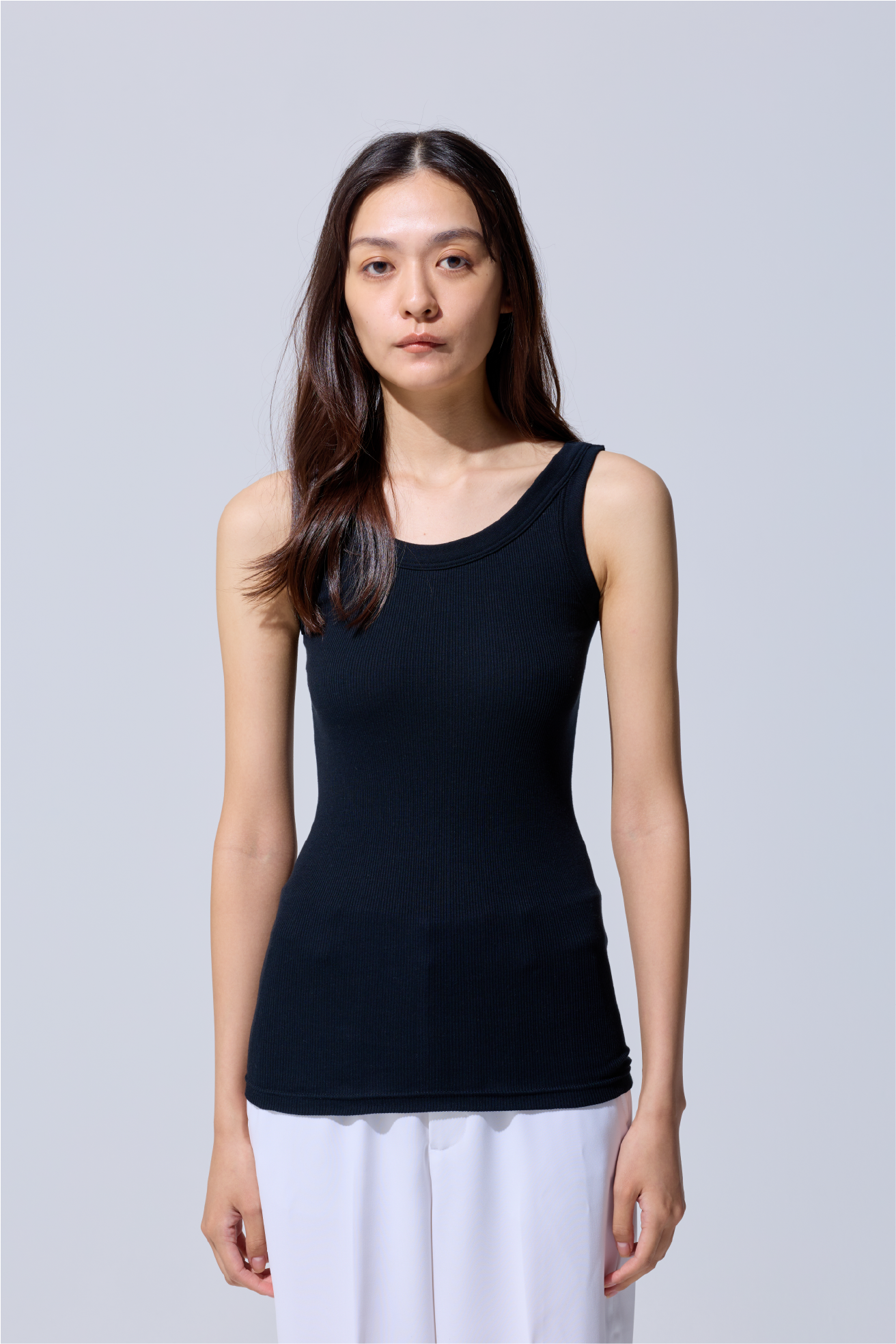 ・胸元が見えないシルエット