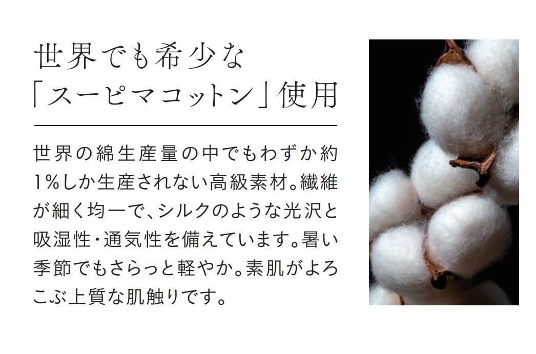 ・高級綿素材「スーピマコットン」で夏でもサラッとした肌あたり。