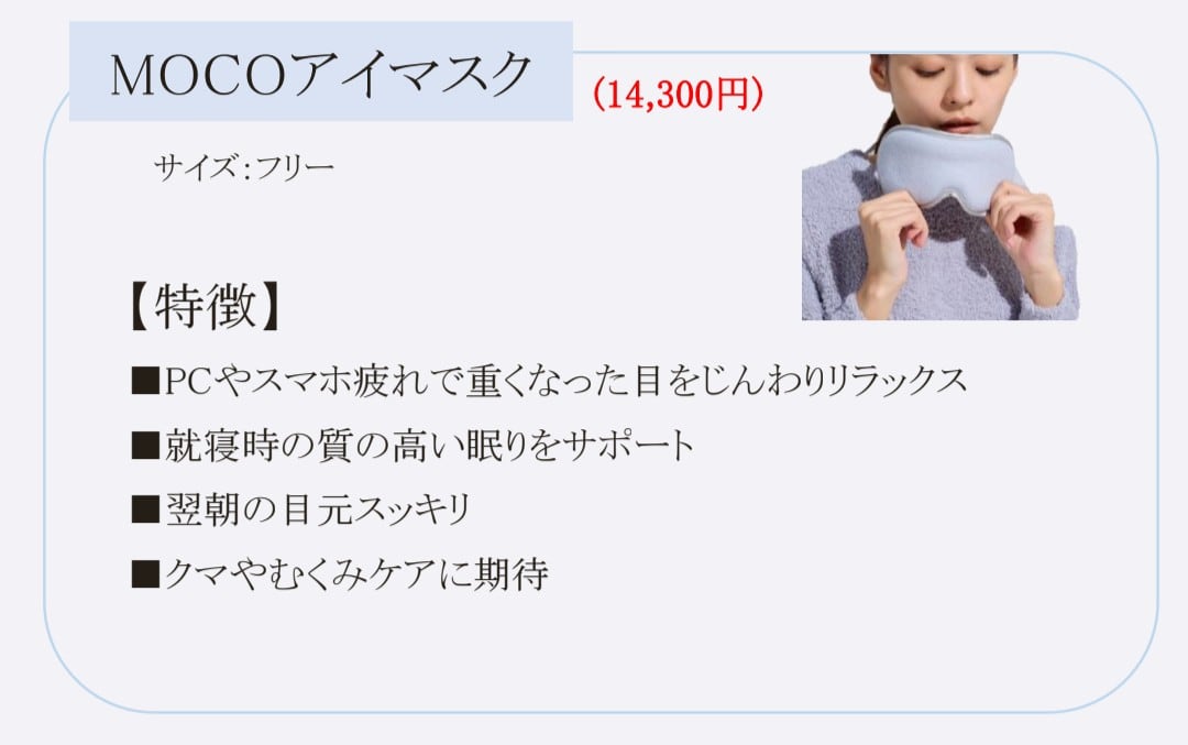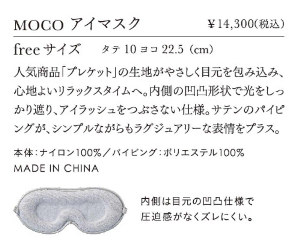 人気商品「プレケット」の生地がやさしく目元を包み込み、心地よいリラックスタイムへ。