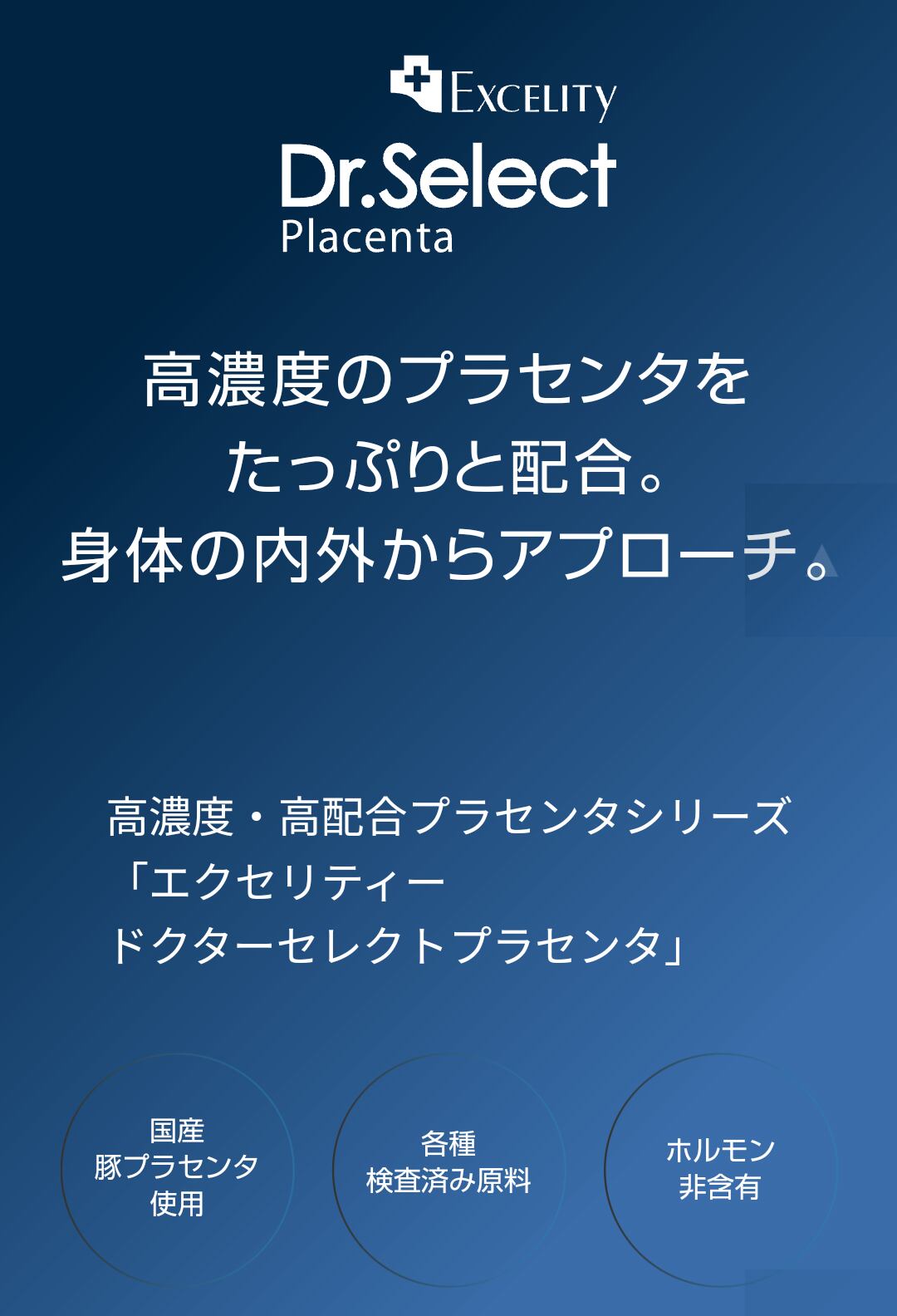 「エクセリティー ドクターセレクト 320000プラセンタドリンク」は、プラセンタエキスと厳選した 各種サポート成分を高濃度で配合した美容健康ドリンクです。