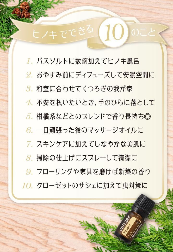 日本特産のヒノキから抽出されるオイルには、数多くの使い方とメリットがあります。