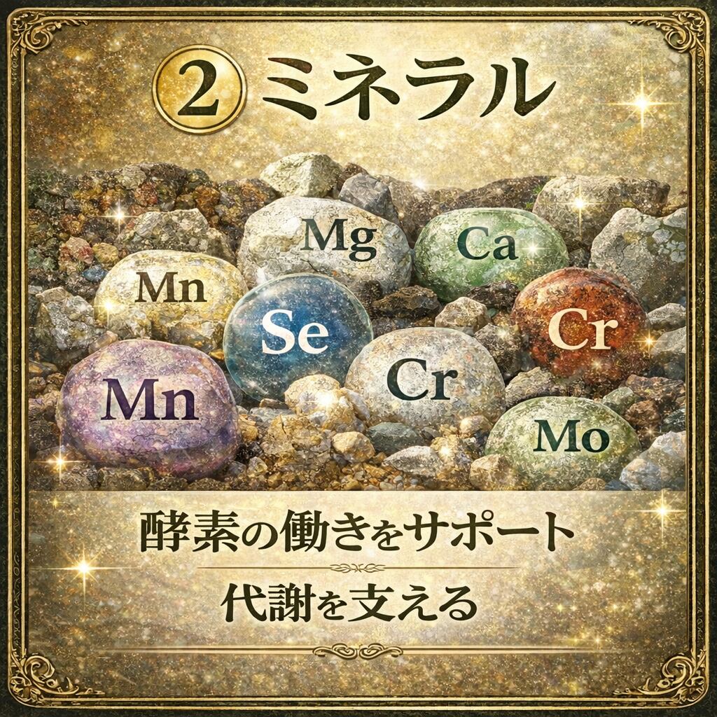 また健やかな日々を送る上で重要なカギを握る『ミネラル』は、ビタミンB群をサポートするためにバランス良く調整。