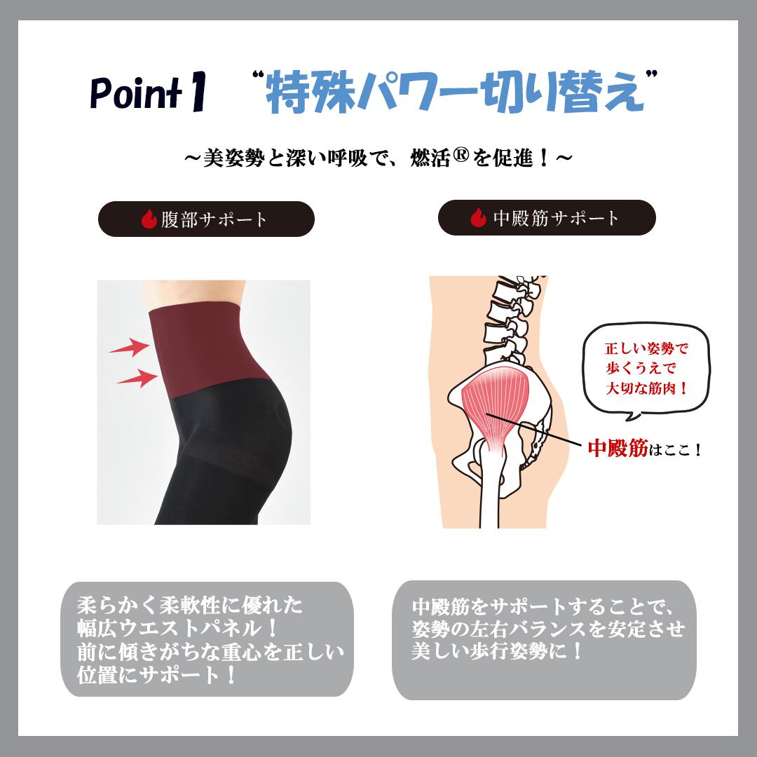 ダイエットトレーナー小山圭介氏監修の特殊パワー切り替えが、正しい姿勢へサポートし、 日常生活での動きを燃活Ⓡに!