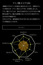 大豆タンパク(アメリカ合衆国製造)、有機アガベシュガー、黒糖、有機アガベイヌリン、コーヒー、発芽玄米タンパク、ドロマイト、ホワイトチアシード、エンドウ豆タンパク、グルコマンナン、穀物麹抽出組成物、カルシウム(天然水由来)、みりん粕パウダー、鉄含有酵母、ケール、モリンガ、ブロッコリー、甘薯、マカ、ユーグレナ・グラシリス発酵物、ビタミンD含有酵母、アマランサス、キヌア、クコの実、チアシード、バオバブ、ほうれん草、小松菜、麻の実、苦瓜、明日葉、桑の葉(一部に大豆を含む)