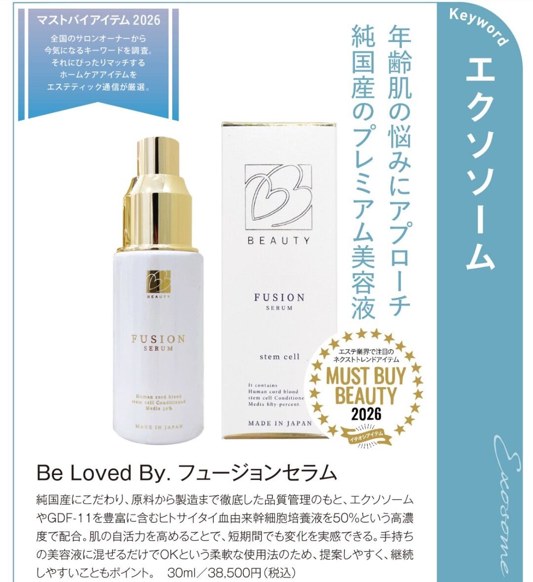 お得なクーポン有♥⚿業界初!50%濃度の国産ヒト臍帯血幹細胞培養上清液 フュージョンセラム 美容液 30ml Be Loved By ビーラブドバイ