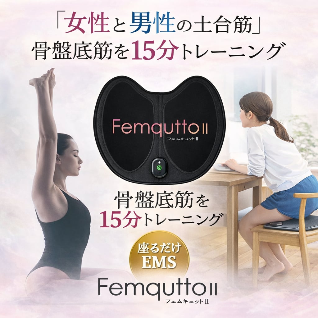 フェムキュットⅡは、普段なかなか鍛えることが難しい「骨盤底筋」にアプローチするEMSトレーニング機器です。